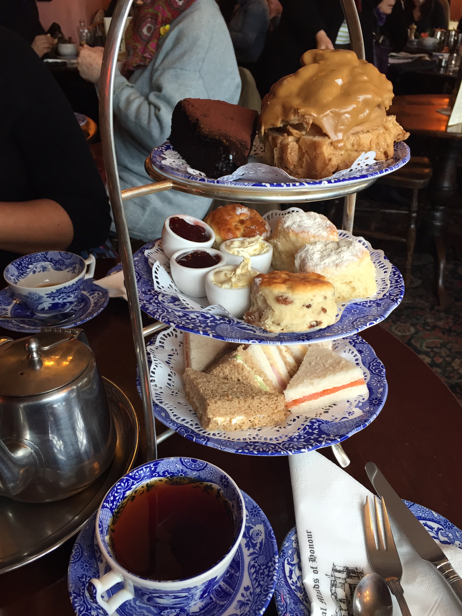 As soon as there was space we were brought our fresh scones served with clotted cream, strawberry jam and fig jam. One word, lovely.